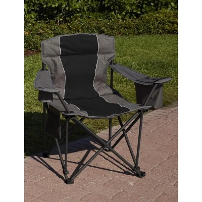 1,000-lb. stationary weight capacity*, Additional center frame support ensures durability and support, Rigid components stand up to the stress of normal use, Heavy-duty, super sturdy 22mm tubed frame, High quality, fully padded 600-denier polyester fabric distributes weight evenly across frame, Oversize shatter-proof nylon feet provide traction for added stability, Drawstring mesh pocket (approx. 14″w x 15″l) attached to chair back stores handy essentials, Left armrest has zippered cooler, Right armrest has oversize gadget/cup holder, lower mesh side pocket, Includes drawstring storage/tote bag with shoulder sling, Seat: 26.5″w x 23″d