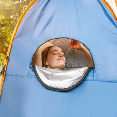 The Alpcour Portable Pop-Up Tent ensures comfort and privacy when showering, changing, or answering nature’s call while camping. Designed to accommodate anyone comfortably with dimensions of 6 ft 10.7” height and 3 ft 11” width and length, this tent is made of durable, lightweight, and 100% waterproof polyester fabric. It boasts a sturdy metal rod frame that withstands wind and rain. This tent comes with essential accessories, including hooks for lanterns and towels, cloth hangers, a toilet paper holder, and a storage pocket for toiletries. It provides secure privacy with its thick material and sturdy structure, reducing worries about being exposed. Easy to set up and fold down, it includes ropes, sandbags, and stakes for a stable installation. A hole for shower attachment and a zipper window for ventilation add to its convenience. Store it compactly in its carry bag when not in use. An included manual guides the installation process.