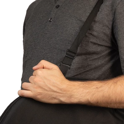 - Shoulder strap allows for easy, hands-free transport.