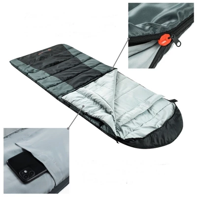 - SMART DESIGN – Features a lined drawstring hood and a drawstring draft collar to trap warmth. The dual sliding zipper allows you to easily get in and out and the zipper guard prevents snagging and tearing. This sleeping bag also has an interior pocket where you can store your wallet, keys, phone, or headlamp.