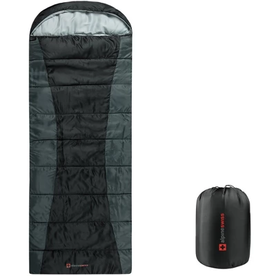 - ALL SEASONS – The Alpine Swiss sleeping bag is perfect for camping in the summer, spring, fall, or winter. The temperature rating for this bag is 32 – 80°F (0° – 26°C) making it versatile to use year round.