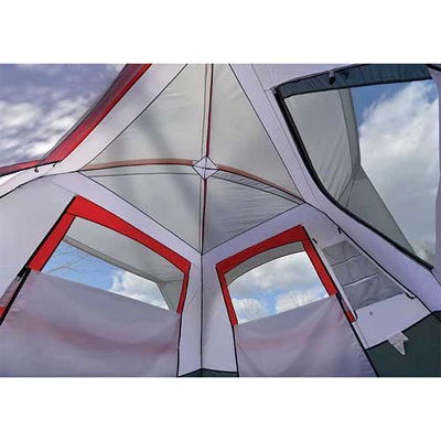 The Camp Creek will provide a luxury home-away-from-home the next time you want to get away. Since it uses fiberglass poles that connect to steel uprights, it provides ample interior space, with almost straight walls, to give you more usable space when you’re inside. This is great whether you are setting up cots, or just want more space inside to hang out and play a round of cards before bed. The rainfly provides large awnings over the front door and back window, which is a great feature when it’s raining. Available in a 4- or 6-person size, this is a great option for all your camping adventures. Features: 路Large door allows easy entry路75D 185T polyester fly with 1500mm coating resists UV damage and stays taut路150D polyester oxford floor with 1500mm coating路Factory-sealed fly and floor seams provide best weather protection路Weatherproof fly buckles to tent for maximum adjustability and protection路Great ventilation with one door and four large windows路Mesh storage shelf, steel stakes and guy ropes includedSpecifications: 路Base size: 10′ x 10’路Center height: 84″路Tent area: 100 ft?路Total weight: 23 lbs. 8 oz.路Packed size: 8.5″ x 28″路Pole diameter: 11 mm FG | 19 mm steel.