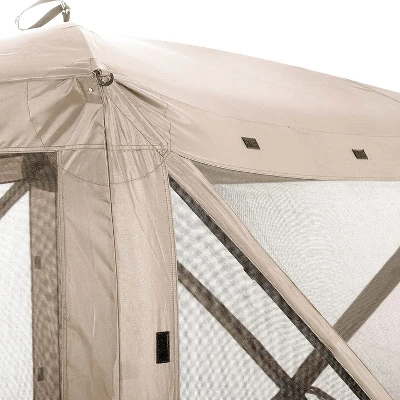 Rain or shine, enjoy the outdoors in your CLAM Quick-Set Traveler Portable Outdoor Gazebo Canopy Shelter. This 6 x 6 x 6.8-foot pop-up canopy is designed to provide shelter and protection from the elements while outdoors. Ideal for camping, picnics, and sporting events, this outdoor gazebo keeps the elements from ruining your day. No assembly is required, and it sets up in just 45 seconds. When your stay is over, the Quick-Set Traveler can be stored in its convenient oversized carry bag. The pop-up canopy packed size measures 7 inches long by 7 inches wide by 4.4-feet tall. For added protection against wind, rain, and sun, attach the Clam Quick-Set Tan Wind Panels to your Quick-Set Traveler and Escape gazebos. When unwanted weather shows up, add 1, 2, or 3 extra panels for additional protection and keep the elements from ruining your day. They are easy to install with elastic and Velcro strap attachments.Say goodbye to windburns, sunburns, wet clothes, and bug bites when you pop up the CLAM Quick-Set Traveler Portable Outdoor Gazebo Canopy Shelter with attachable wind panels.
