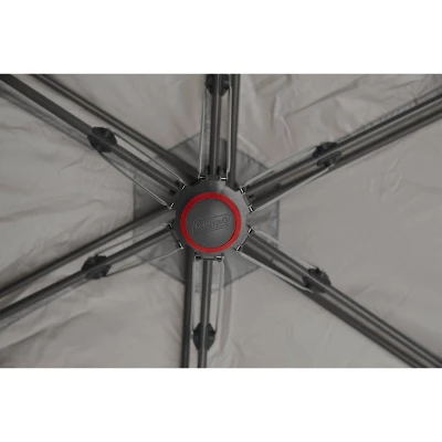 Bring on the bug-free outdoor adventures with the Coleman® Back Home™ screen canopy tents. Lounging with the family in the backyard or hanging with friends in the park? The Coleman Back Home 15 x 13 Screen Tent sets up easy using a one-push center hub with OnePeak™ technology. We made sure the screen tent fits over a picnic table so you can eat inside the enclosed mesh walls without the pests. Plus, the 2 entryways let you move all your gear in and out easily. The robust steel frame withstands winds up to 35 mph when the canopy is fully staked, and the Comfort Grip™ pinch-free buttons make the canopy easy to set up and take down. UPF 50+ sun protection helps block sun’s harmful UV rays and overhanging eaves provide even more shade. When it’s time to go, the wheeled carry bag makes it easy to pack up and go.