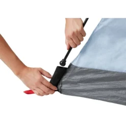 - Comfort Gripâ„¢ features pinch-free buttons that lock the poles in place for easy setup and takedown