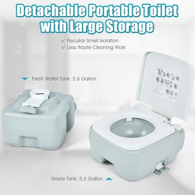 - Detachable Toilet for Easy Carry: You can disconnect the fresh water tank from waste water tank through an easy-to-use side latch, offering much convenience in carry and clean. Both tanks have handles on the side to make transportation easy. It also means that you can store it separately to save more space.
