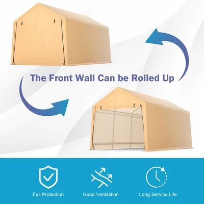 - Multifunctional Carport: The front door of the carport can be easily rolled up after opening it with the convenient zippers. And the fixing straps keep it in the top place. Moreover, the front and back doors can also be detached according to your demands. You can use this carport for car parking, outdoor wedding, picnic and so on.