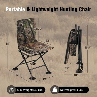 - 360° Silent Swivel Base: Equipped with a 360° rotatable base, our folding blind chair will give you all-round vision. And with an advanced silent design, it rotates without making any noise to scare off your prey. In addition, the cushion has a natural pattern that facilitates concealment and improve your hunting efficiency.