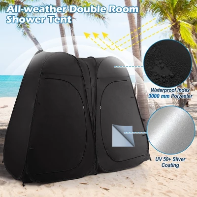 - Versatile Double-room Tent: The 90” x 48” x 76” oversized privacy tent with 2 rooms offers large space to meet your various needs as a shower tent, camping toilet, changing room. Besides, the double room tent can be divided into 2 single room tents to satisfy different needs.