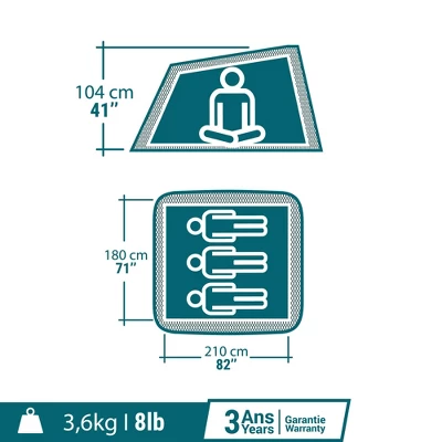 Decathlon Quechua Quechua 2 Second Waterproof Pop Up Camping Tent 3 Person, Storm Gray