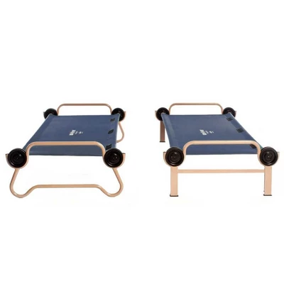 Base camps need to be compact and comfortable. For your camping needs, you can rely on the Disc-O-Bed Large Cam-O-Bunk Benchable Double Cot with Storage Organizers. This cot provides plenty of room to kick back and relax without taking up too much space. You can use this as 2 separate cots, as benches, or bunk them to suit your needs. These cots sit 11 inches off the ground with a round frame that will be sure not to sink into the earth for maximized comfort. Stash your gear, field notes, or other personal items in the hanging organizers. When bunked, there are 21 inches of headroom for your buddy on the bottom bunk. The cot beds form a naturally contouring sleep system that curves around your body comfortably. As the large model, the bunks have enough space for someone over 6 feet to toss and turn. Each bunk has a sleeping area that measures 79 inches long by 28 inches wide. You’ll love the space, comfort, and tool-free setup of the Large Cam-O-Bunk Double Cot from Disc-O-Bed.