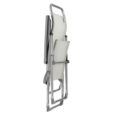 Bring comfort to your camping trip, outdoor event, or backyard party with the Lafuma Alu Cham Camping High Back Armchair Adjustable 5 Seating Positions. This chair features a durable, lightweight, and rust-free aluminum frame to withstand wear and tear from outdoor use. Achieve extra comfort and support with the ergonomic and stylish backrest with lumbar support. Simple armrest movements let you easily adjust this armchair to 5 relaxing backrest positions. The seat is made from a breathable mesh fabric that allows air to circulate, preventing sweating and ensuring a comfortable seating experience.Featuring an easy-to-fold and lightweight design, this chair folds into a compact size, making it easy to transport and store. The chair is also durable enough to withstand harsh weather conditions, making it perfect for outdoor use.The Lafuma Alu Cham High Back Armchair is a perfect addition to any outdoor adventure, providing a comfortable and convenient seating option.