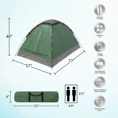 Create a home away from home wherever you wander with this Leisure Sports 2-Person Dome Tent. This sporty, lightweight green tent is sized just right for two people and offers a dual-layer D-style door that lets fresh air in while keeping flying critters out. An interior storage pocket helps you organize essentials inside the tent, and it comes with a carrying bag for easy transport and storage.