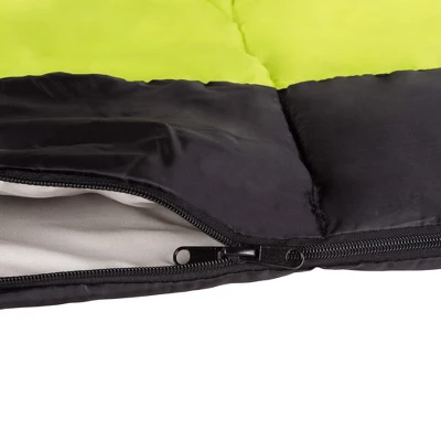 Fight chill on cools nights on your next camping trip with this Leisure Sports 2-Season Sleeping Bag. The bag is filled with hollow fiber insulation that keeps you warm on spring and summer nights when temperatures drop to 50 degrees, and the soft polyester lining is designed for maximum comfort while you rest.