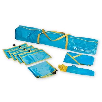 Lightspeed Outdoors’ Tall Canopy with Shade Wall is perfect for outdoor adventures to help protect you from the sun! Sidelines of a game, out on the beach, or camping—this shelter is made to keep you shielded from the rays and windy conditions. Our bottom-pull hub system makes setup and takedown simple to do so you can spend more time with your friends and family outdoors. It is lightweight at 9.3 lbs, making it easy for travel yet it is sturdy, durable, and provides proper protection. The 94.5″ x 94.5″ x 76.8″ size (6’4” head room) fits 4 full sized chairs. Packing down to 43″ x 5.5″ x 5.5″, this is easy to carry and store with help from the zippered carry bag with straps. We offer a consumer friendly 1-year warranty on sun shelters and beach shade canopy tents.