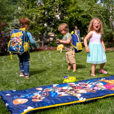 Get ready for “PAW Power” with the Nickelodeon PAW Patrol 2-Piece Overnight Kit, featuring your favorite PAW Patrol pals. With a backpack and sleeping bag, this kit is perfect for camping, outdoor adventures, or a slumber party inside the house! The pack includes an easy main zipper, two side pockets and padded, adjustable shoulder straps. The sleeping bag features soft, breathable fabrics and cozy insulation that help maintain a comfortable temperature all night long. With the PAW Patrol sleeping bag and backpack, you’ll be ready for any adventure, day or night.