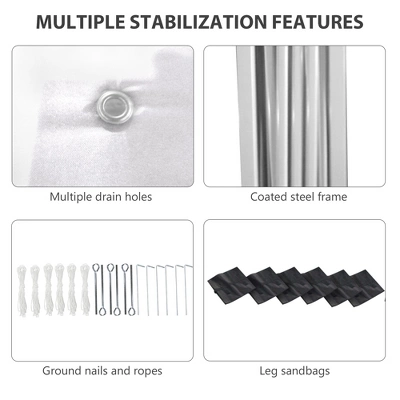 Outsunny 19′ X 10′ Large Party Tent, Height Adjustable Pop Up Canopy With Weight Bags And Wheeled Carry Bag