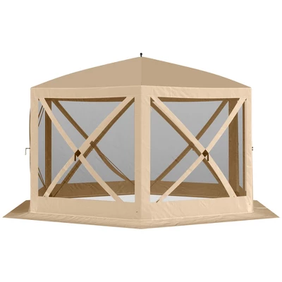 Accommodate yourself and others comfortably while camping at festivals, during picnics, and more with this hexagon screen tent from Outsunny. We made sure to include steel ground stakes and solid guy ropes to help stabilize the cabana and protect you against light wind and weather. Accommodating six to eight people comfortably, the screened canopy is finished with mesh sidewalls for increased ventilation and will make you fall in love with exploring the great outdoors.