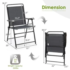 Costway 4PCS Folding Sling Chairs Steel Armrest Patio Garden Camping W/Adjustable Back