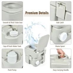 Costway 5.3 Gallon 20L Portable Travel Toilet Camping RV Indoor Outdoor Potty Commode