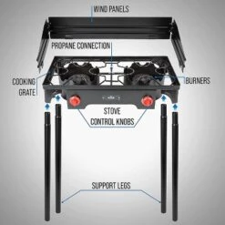 Hike Crew Double-Burner Camping Stove, Portable Propane Stovetop