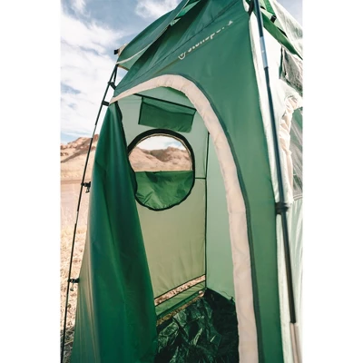 This well-constructed, Deluxe Privacy Shelter is perfect for a day at the beach, by the pool, in the back yard or for any campsite. Shock-corded fiberglass poles are easily secured to the tent with quick set-up clips. The large size provides plenty of room, while being light weight and self-supporting. It also features a removable floor, side two-way windows, stake out rings, and large zippered “D” style door for easy access. Stuff bag included.