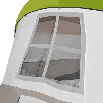 Get outside, explore the wilderness, and camp in the Tahoe Gear Olympia 10-Person 3-Season Tent.Great for sleeping 10 people, this orange and ivory-colored tent is ideal for an overnight with the family or a group of friends or for your longer camping excursions. It’s equipped with easy setup poles, pin-and-rings, stakes, guy ropes, and a rainfly for unexpected rain. The Olympia has excellent air circulation through the open mesh roof and floor vents keep you all cool throughout the night for pleasant snoozing. A high, 84-inch center and tall wall height allow you and your fellow campers to move spaciously through the tent. With abundant space and functionality, the Tahoe Gear Olympia 10-Person 3-Season Tent is ready to house your next group of campers.