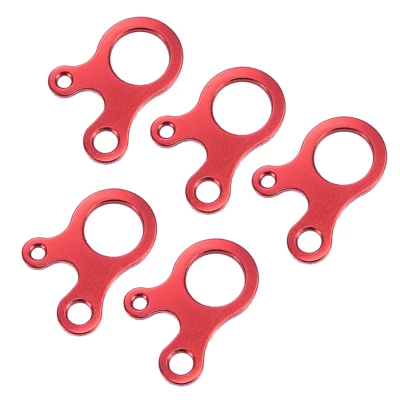 What is this?The aluminum rope tensioner mainly functioning on secure ropes from slipping. Widely used in various places, such as beach, sand, lawn, soil, and so on to fix your camping tent, canopy, picnic mat, rain tarps, fabric net.What will I get?Color: RedMaterial: Aluminum AlloyHole Diameter: 4.5mm, 7mm, 19mm / 0.18″, 0.28″, 0.75″Overall Size: 51mmx35mmx2.8mm / 2.01″x1.38″x0.11″(L*W*H)Package Content: 5/6 x Aluminum Rope TensionerAre there any advantages of the product?Made of aluminum alloy material, with good rust and corrosion resistance, lightweight, easy to carry, durable, and not easy to be bend. 3 hole design ensures a tight grip on the line. At the same time, you can adjust it to the length you want.How to use it?Just let the rope go through one hole. After that, go through the other hole then knot it.What should I notice?Please check the diameter of your rope before purchasing.