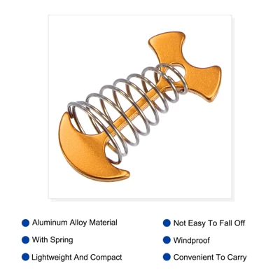 What is this?The tent stake is designed for camping on the dock deck or wood plank road. There is a wide range of applications for camping, hiking, backpacking, good for fixing the tent, awning, canopy, cover, rain cloth, shelter, and more.Are there any advantages of this paWhat is this?The tent stake is designed for camping on the dock deck or wood plank road. There is a wide range of applications for camping, hiking, backpacking, good for fixing the tent, awning, canopy, cover, rain cloth, shelter, and more.What will I get?Material: Aluminum AlloyThickness: 4mm / 0.2 inchHole Diameter: 7.5mm / 0.3 inchSize: 66 x 36mm / 2.6 x 1.4 inch (L*W)Package Content: 6 x Tent StakesAre there any advantages of this product?It’s made of aluminum alloy material, which can stable your object firmly, prevent being blown away by the wind.Practical for use, equipped with the spring, not easy to fall off, lightweight, windproof, compact and convenient to carry and store.How to use it?Easy to install, just insert it into the gap and rotate it to fix when installing the object on the wooden board with gaps in the area. It will not make an impact on the board or deck when it installs. What should I notice?Please be careful with your hands when using the tent stakes.roduct?It’s made of aluminum alloy material, which can stable your object firmly, prevent being blown away by the wind.Practical for use, equipped with the spring, not easy to fall off, lightweight, windproof, compact and convenient to carry and store.How to use it?Easy to install, just insert it into the gap and rotate it to fix when installing the object on the wooden board with gaps in the area. It will not make an impact on the board or deck when it installs. What should I notice?Please be careful with your hands when using the tent stakes.