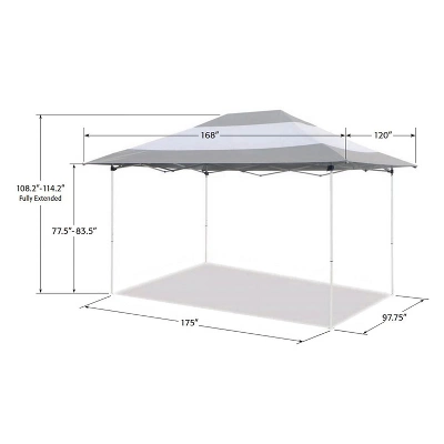 - Stylish 2-tone 14 x 10-foot pop-up canopy with fully assembled Insta-lock frame sets up in minutes